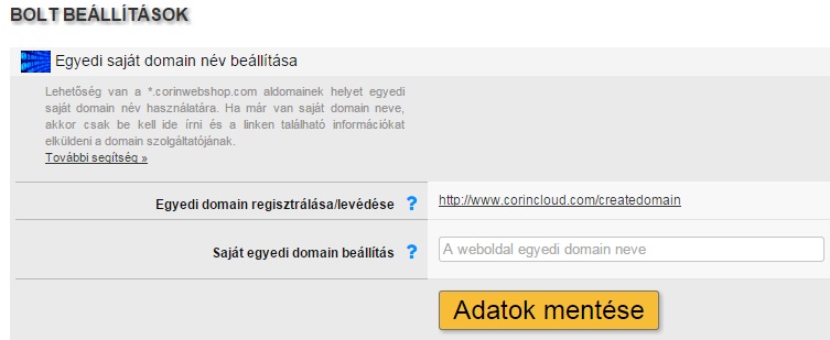 Az adminisztrációs felületen bejelentkezve a Beállítások -> Bolt beállítások -> Bolt alap beállítások menüpontban teheti ezt meg. (Amennyiben nem rendelkezik saját domain névvel, az általunk biztosított aldomain nevet (valami.corinwebshop.com) korlátlan ideig használhatja)
