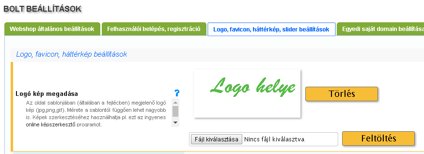 4. lépés: Töltse fel logójátAz adminisztrációs felületen bejelentkezve a Beállítások -> Bolt beállítások -> Bolt alap beállítások menüpontban teheti ezt meg. Logoja lehetséges, hogy egy egyszerű felirat, ám a webáruház azonosításában fontos szerepe van.