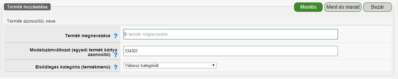 A terméket nagyon egyszerűen rögzítheti, első lépésként csak a terméknevet és a termék kategóriát kell megadnia.